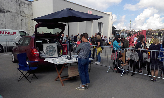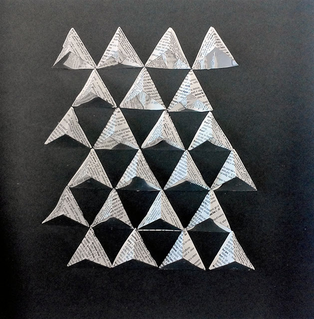 For the 2017 Art Car Boot Fair on Folkestone's Harbour Arm, Thurle made a series of playful geometric works in which pages of text are cut and folded to form pyramid relief sculptures. 20X20x5cm, each piece was carefully constructed from old dictionaries and encyclopedias and presented in a takeaway pizza box. The takeaways proved highly popular. More to follow.